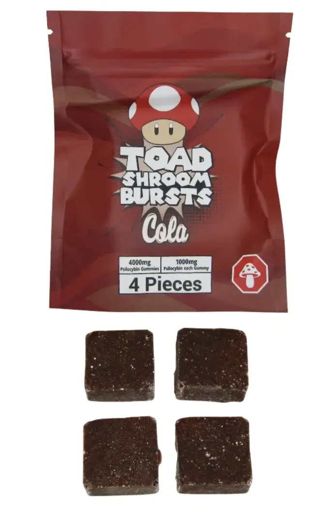 Toad Cola Gummies deliver the nostalgic taste of fizzy cola candy combined with a smooth, potent psilocybin experience. Each pack contains 4 grams (4000mg) of top-quality psilocybin mushrooms infused into 4 strong gummies (1,000mg each).